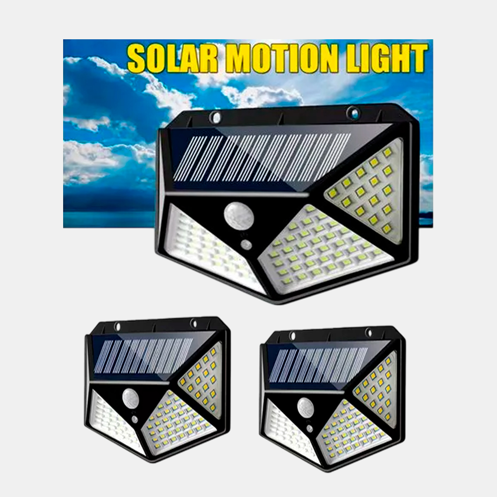 Moderna lampara led solar», se apaga y carga con luz solar durante el día; al detectar oscuridad, ilumina con una luz brillante de 675 lumens, proporcionada por sus 40 focos LEDs incorporados.